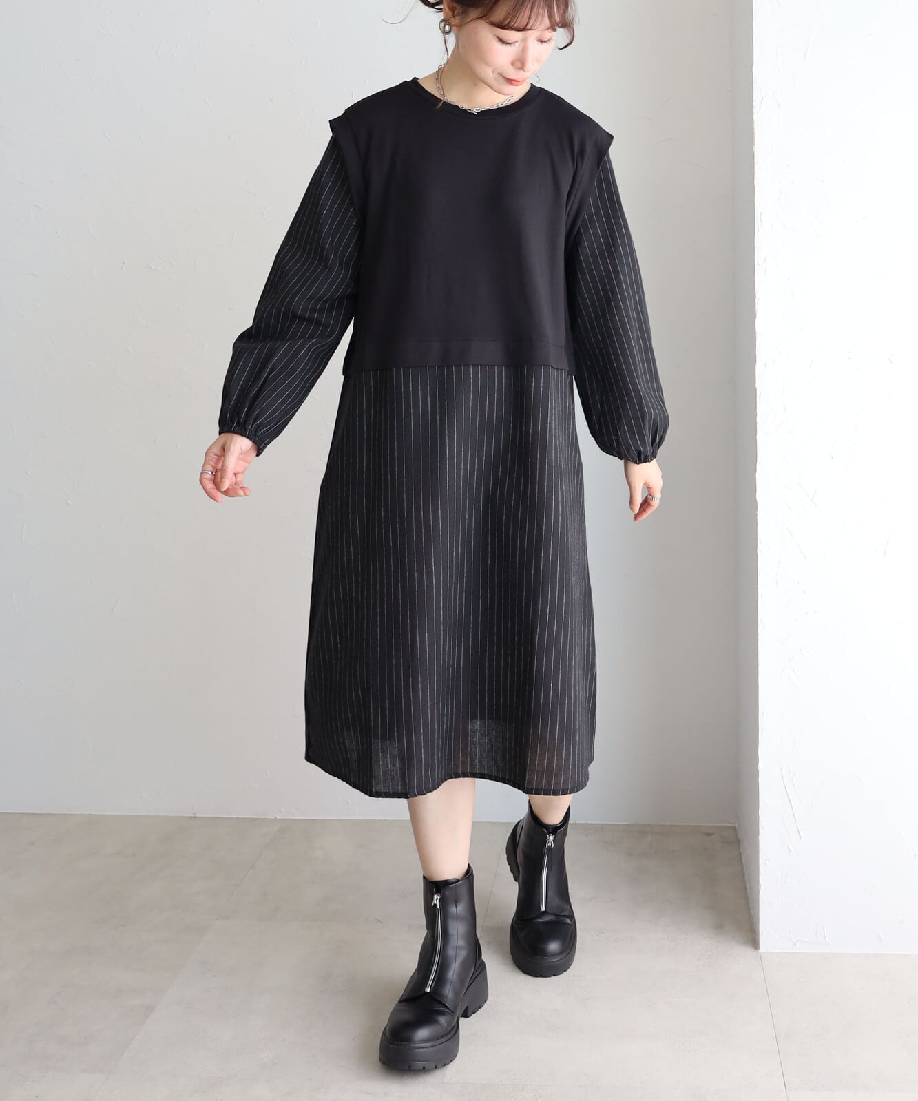セレクション ミセス ヤングミセス レディース オトナ フリーサイズ モード モノトーン 40代 50代 60代 70代 80代 ゆったり ビックシルエット 大きいサイズ オーバーサイズ おしゃれ かっこいい かわいい カジュアル インナー ラウンド 長袖 フリル レイヤード 上品 フェミニン 伸縮性 ストレッチ hanahana 秋冬 AW