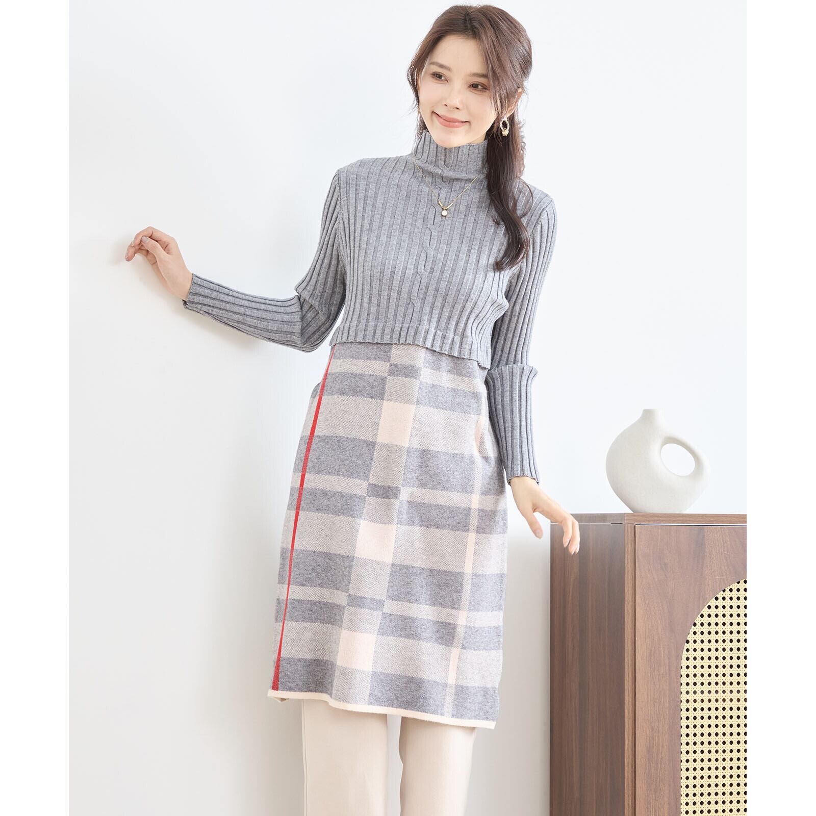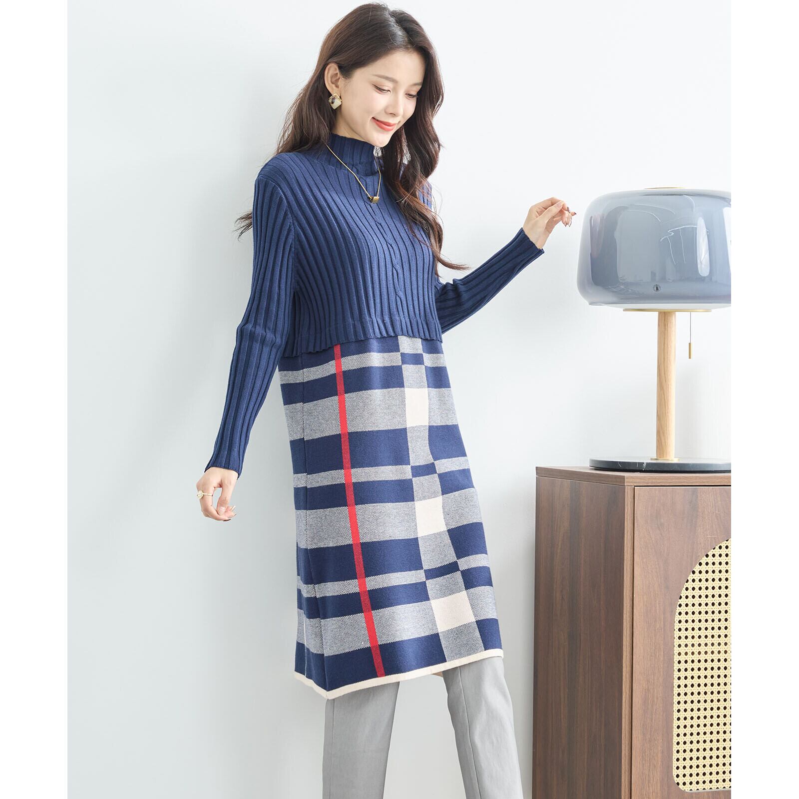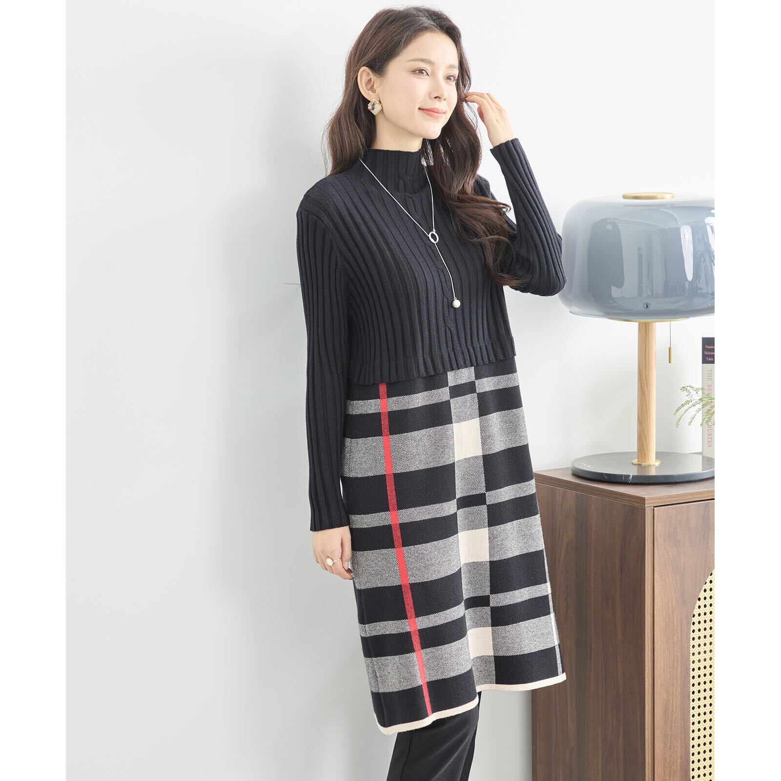 新作 R38-275B チェックドッキングニットワンピースtiktok