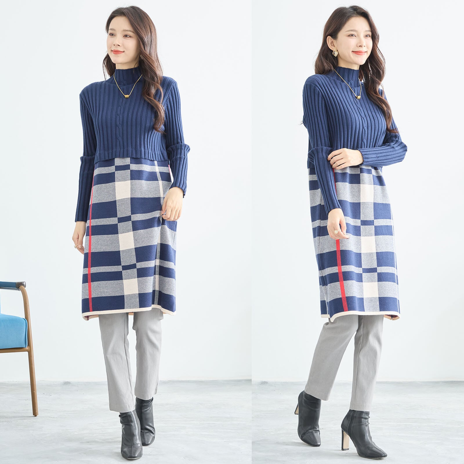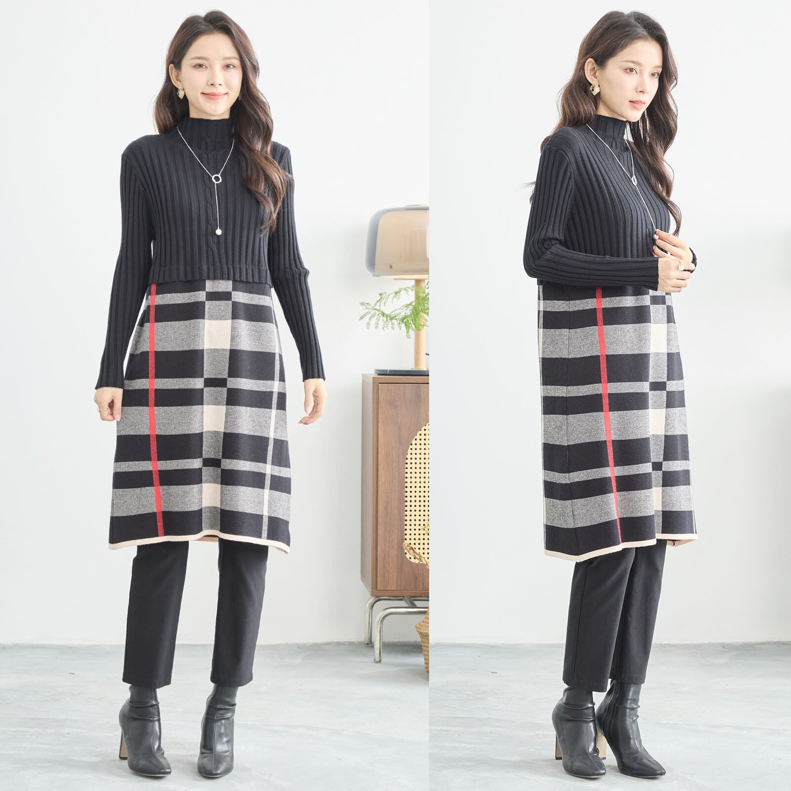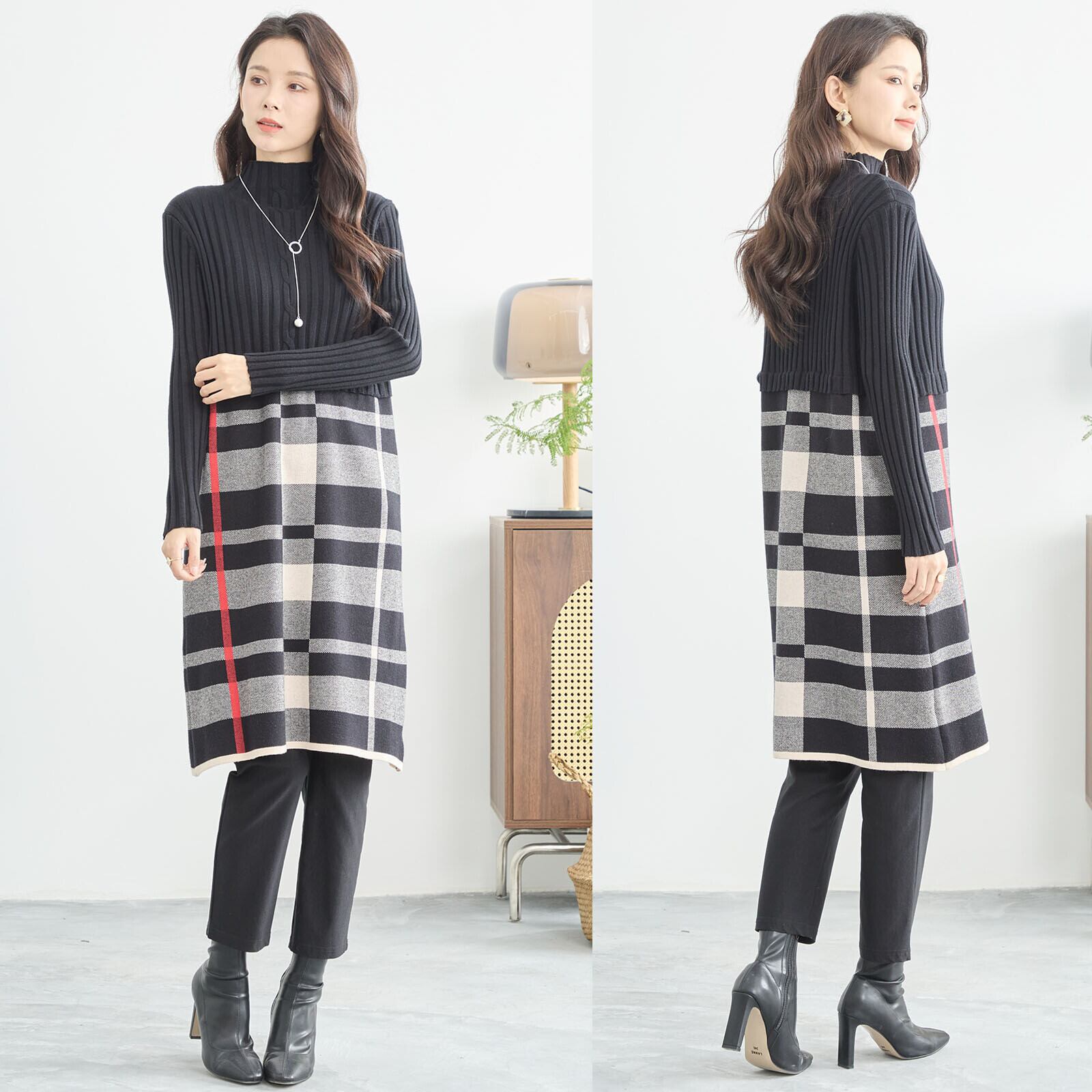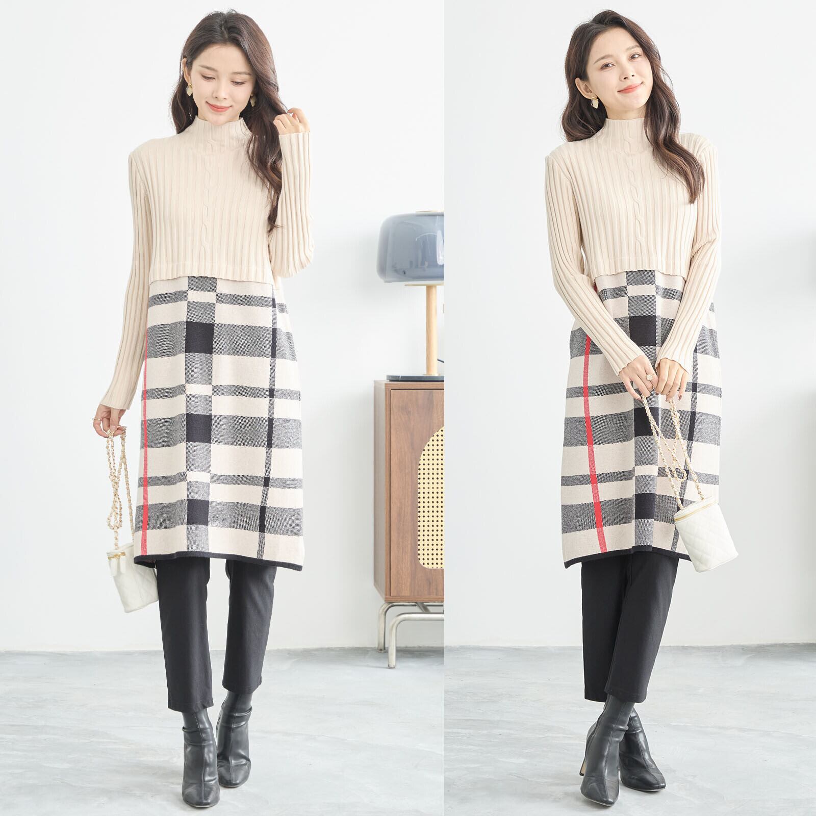 新作 R38-275B チェックドッキングニットワンピースtiktok