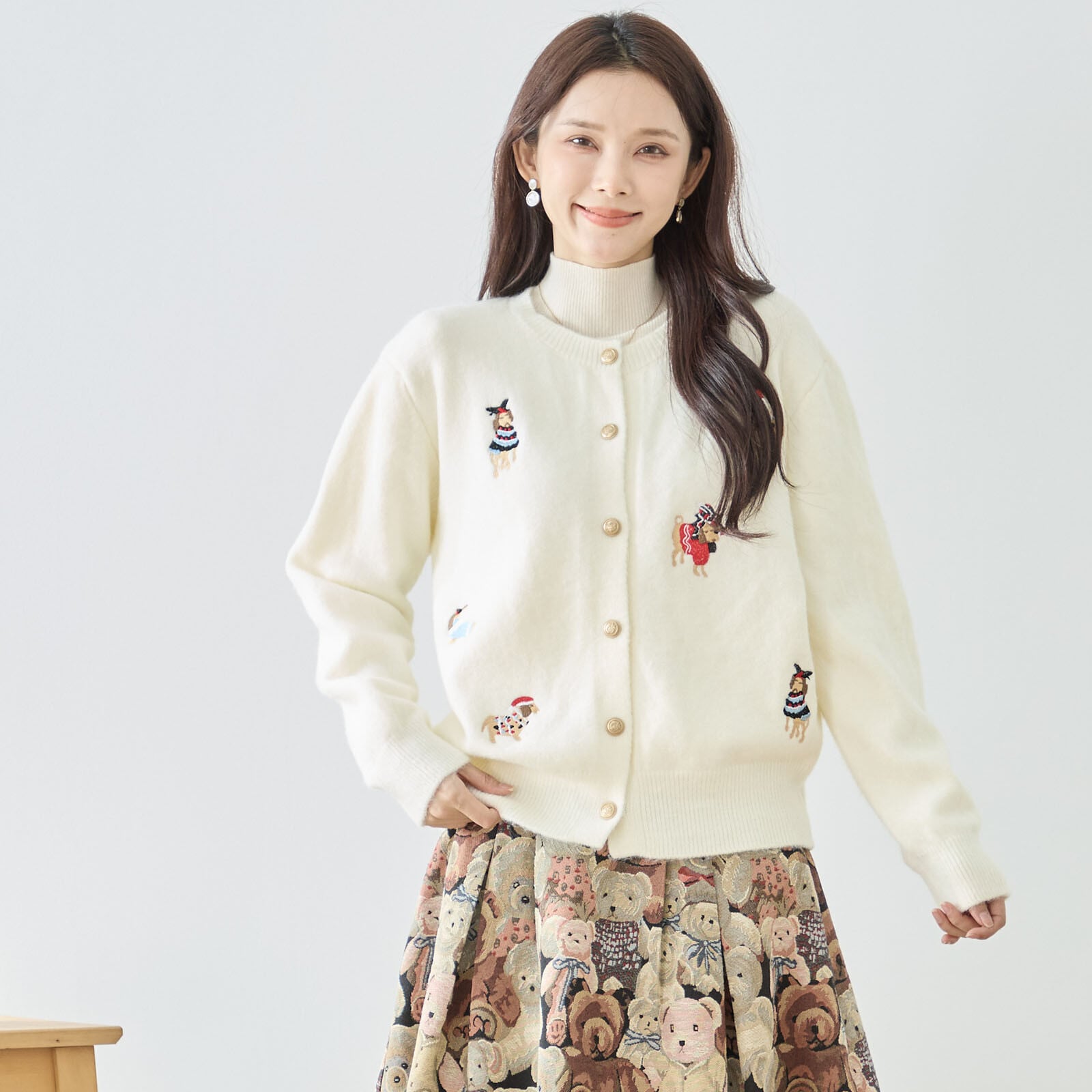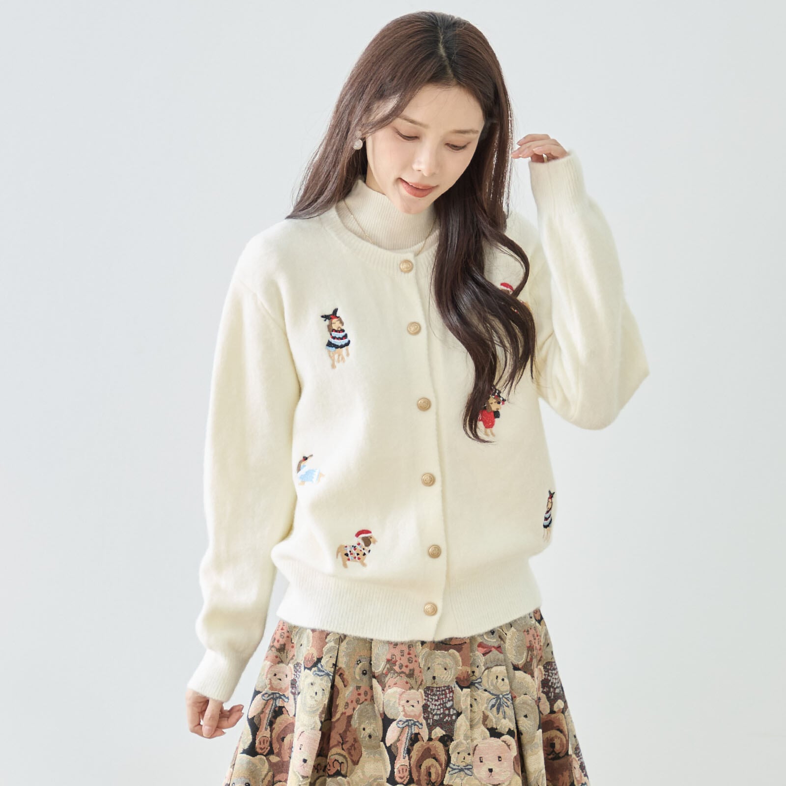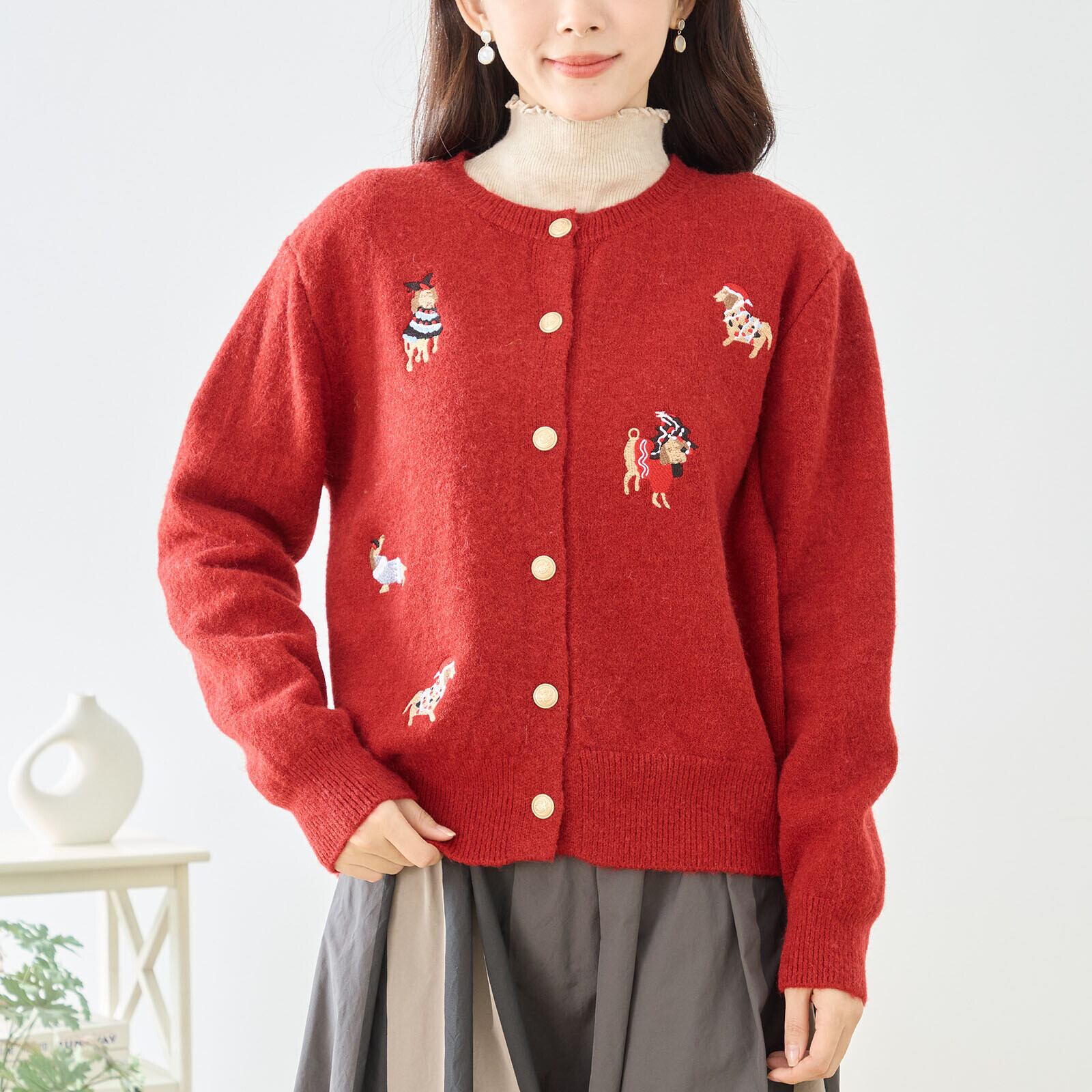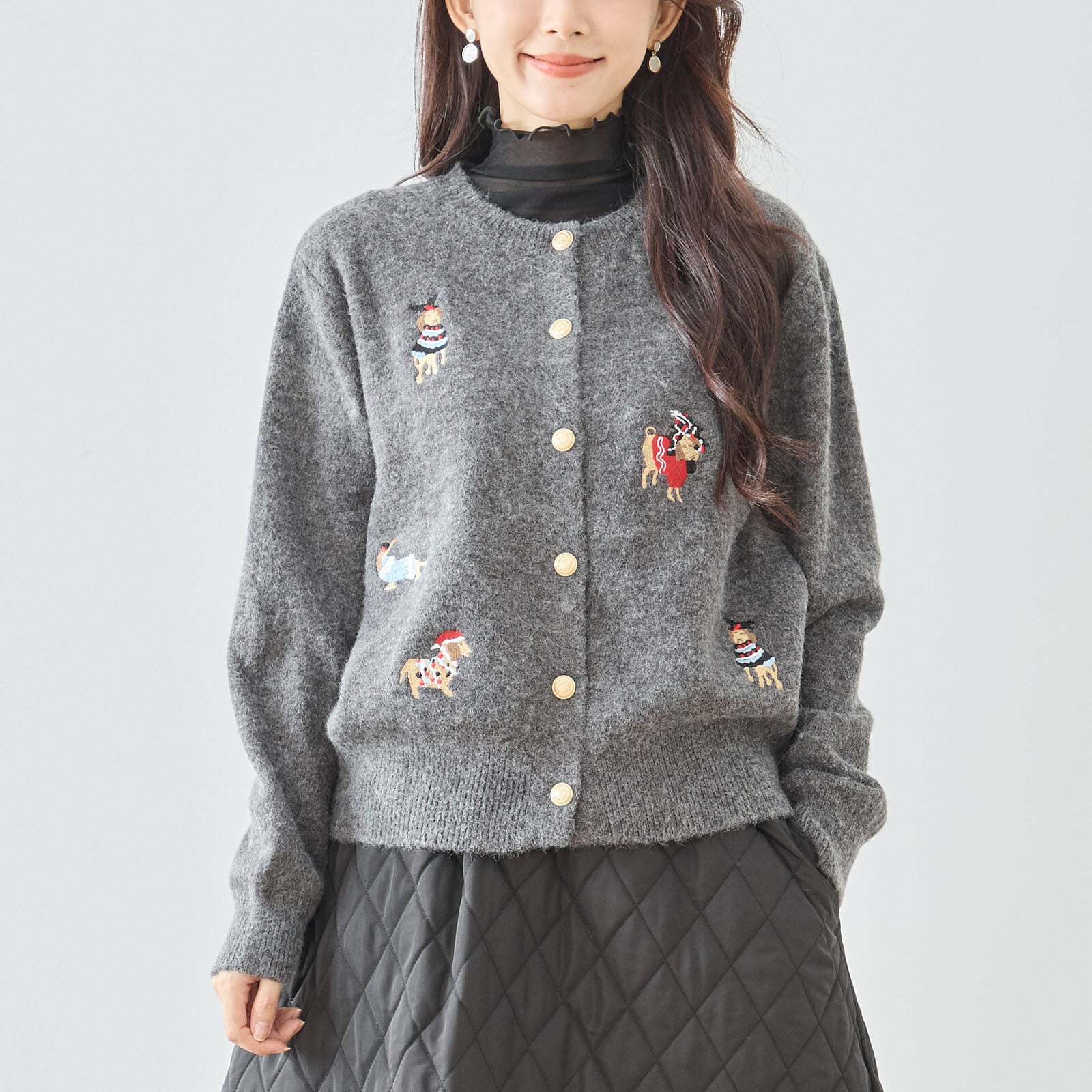 新作 N25-234 ドッグモチーフ刺繍カーディガン
