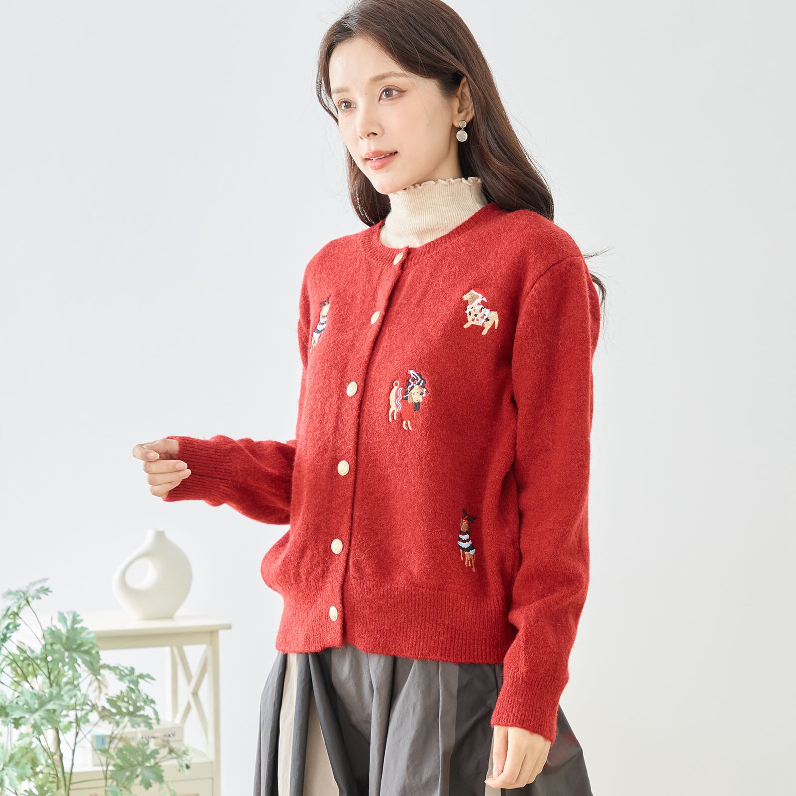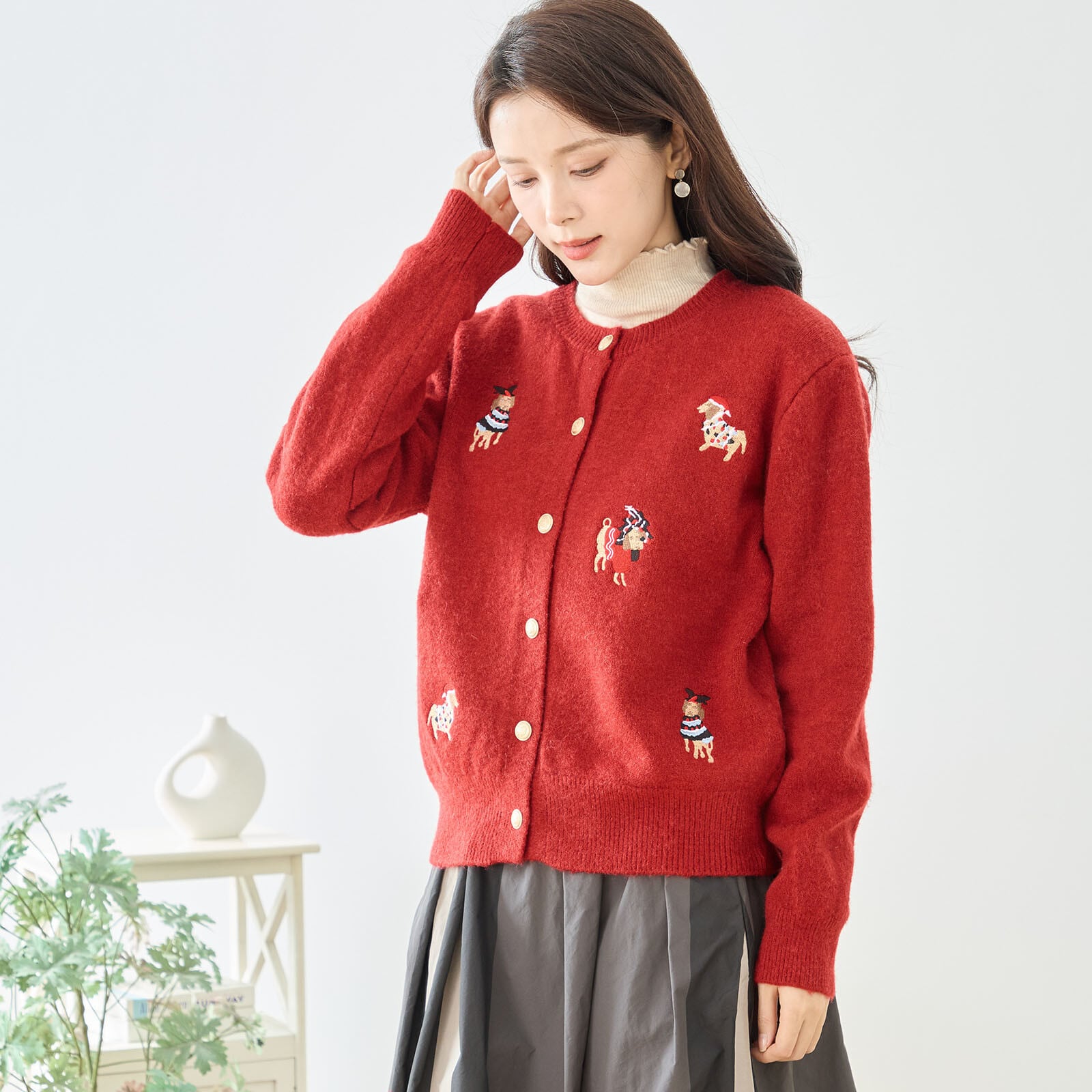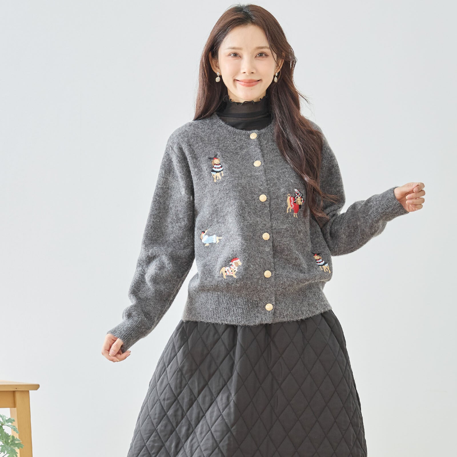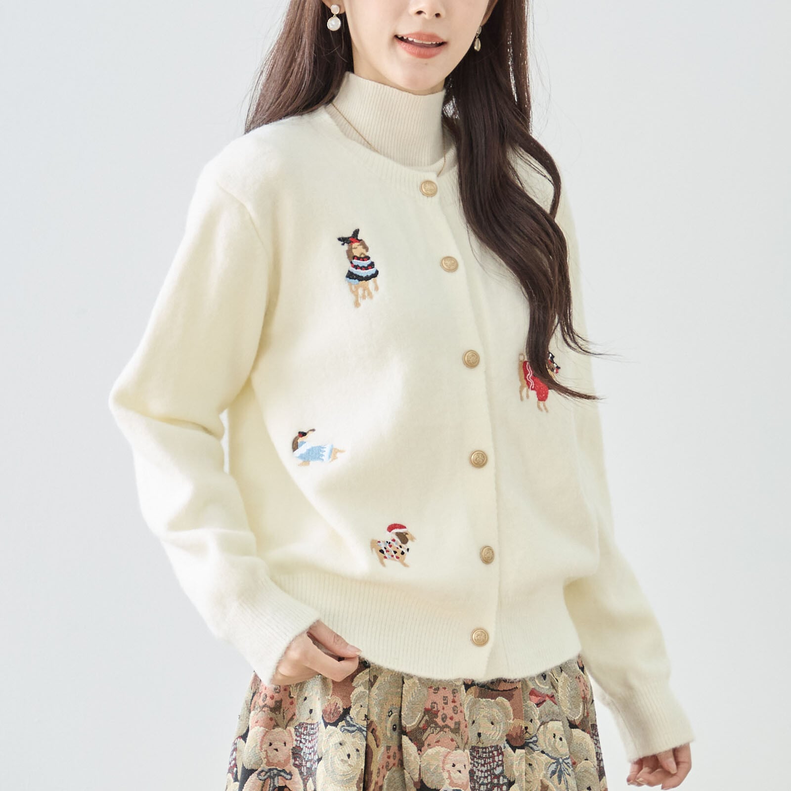 新作 N25-234 ドッグモチーフ刺繍カーディガン