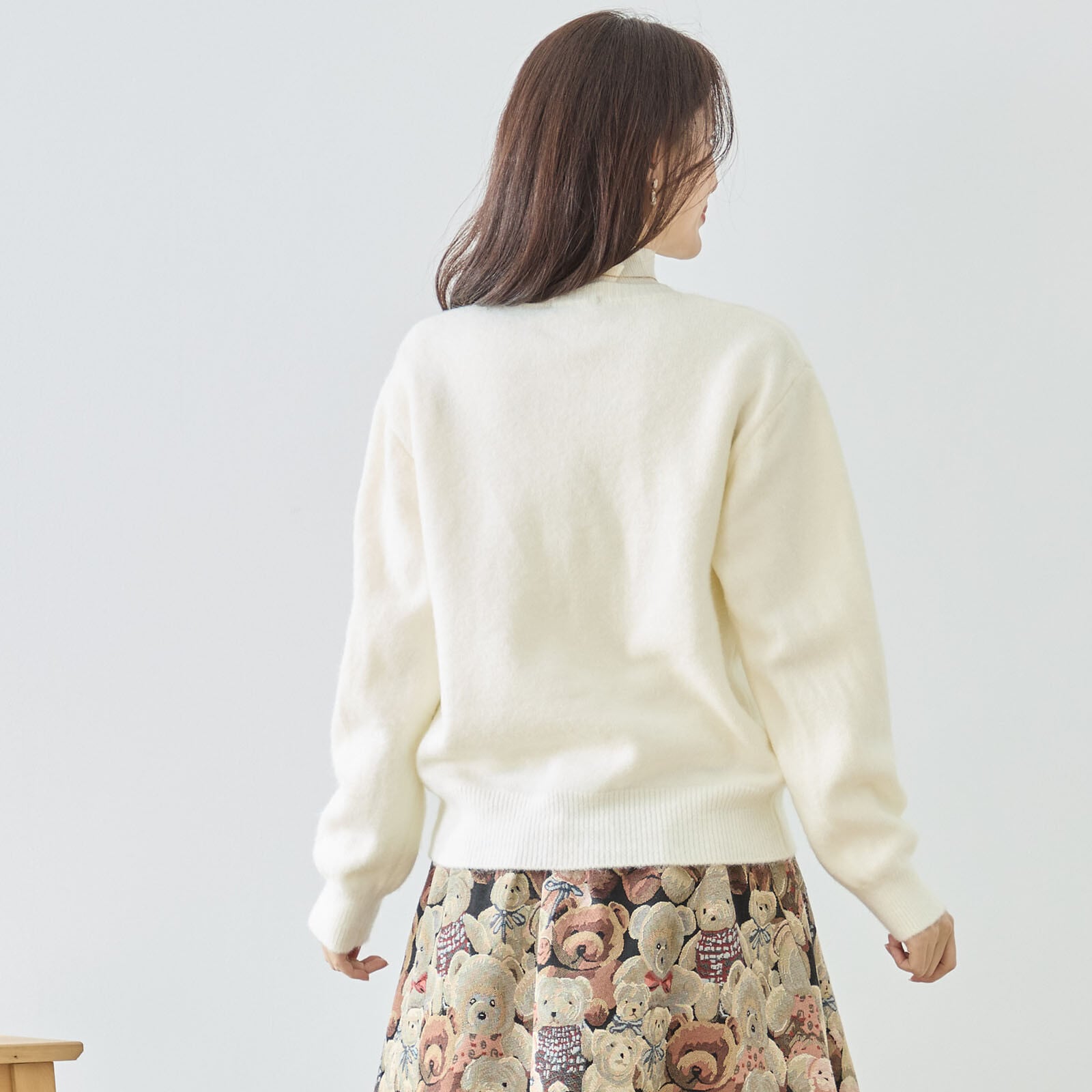 [Design]まるで物語のワンシーンのような刺繍モチーフが散りばめられた、大人の遊び心を感じさせるニットカーディガン。ふわっとしたタッチで着心地も軽く、カジュアルからきれいめまで幅広いコーディネートにマッチします。クラシカルなクルーネックと品のある金ボタンが全体を引き締め、インナーにシャツやタートルを合わせるだけで、季節感のある着こなしが完成。