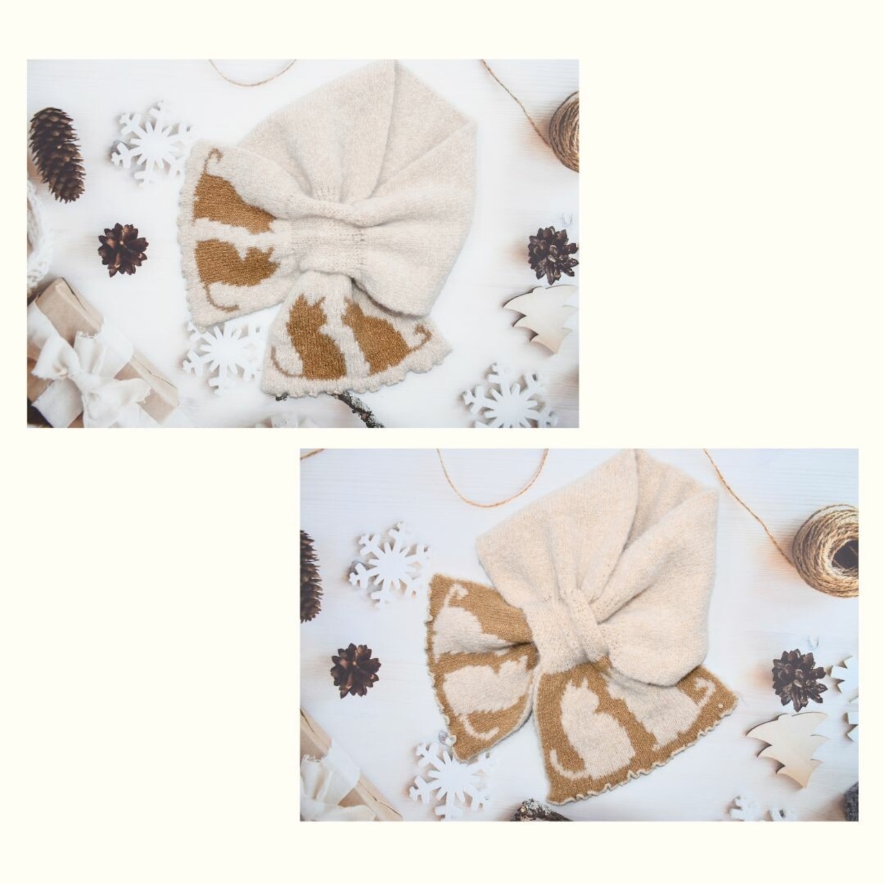 ◆可愛いニットティペットは、両面色違いで楽しめるデザインが魅力です。