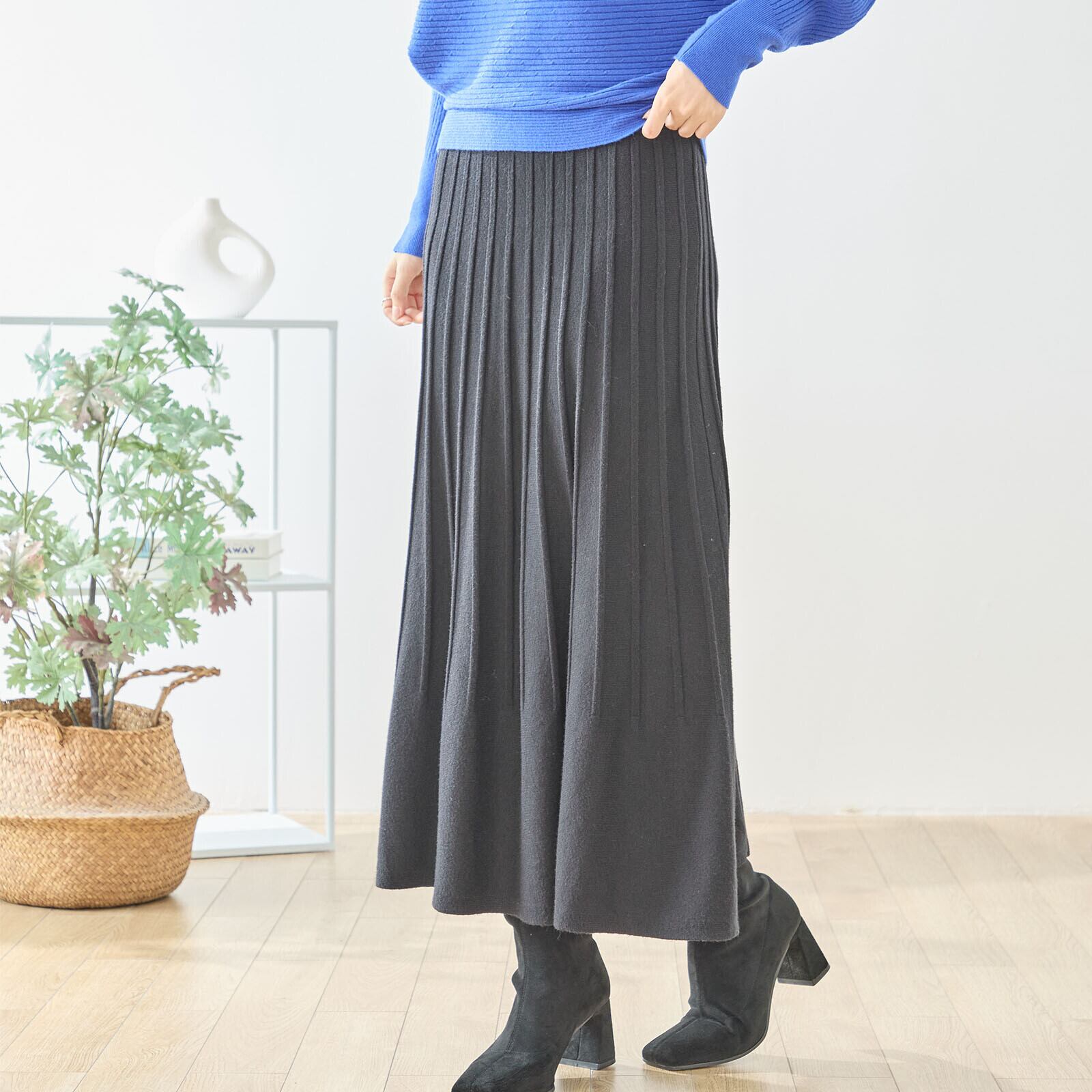 上品な落ち感のあるニット素材で仕立てたプリーツスカート。